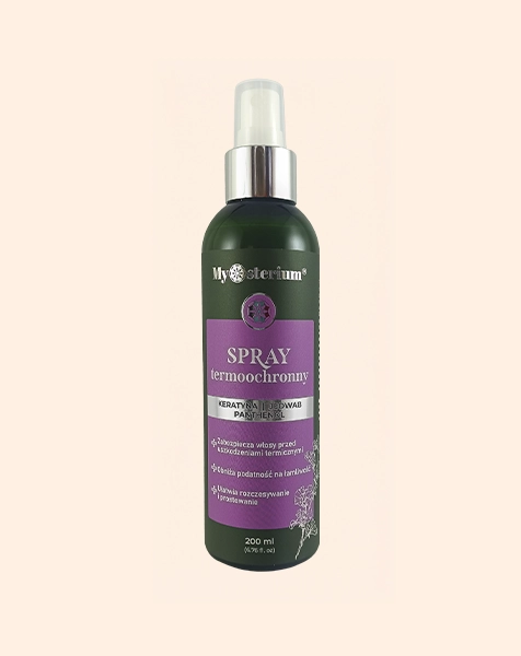Każda świadoma włosomaniaczka wie, że stylizacja z użyciem narzędzi fryzjerskich może niszczyć i przesuszać włosy. Dlatego tak ważne jest, aby każdorazowo stosować kosmetyk termoochronny, który zabezpieczy kosmyki przed szkodliwymi następstwami działania wysokich temperatur. Spray termoochronny MYSTERIUM to nie tylko skuteczna ochrona przed nadmierną utratą wilgoci i uszkodzeniami termicznymi, ale również doskonałe wsparcie codziennej pielęgnacji. Zawarte w nim składniki aktywne odbudowują strukturę włosów, wygładzają łuski, pomagają utrzymać optymalny poziom wilgoci, elastyczność i witalność, a także wydobywają naturalny blask kosmyków.